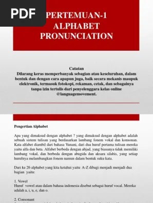 Alphabet adalh susunan suatu huruf yang diawali dengan huruf a dan diakhiri dengan huruf z yang memiliki jumlah 26 huruf.