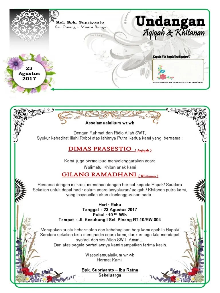Contoh Undangan Khitanan Dan Aqiqah Doc / Contoh Surat Undangan Nikah Doc Contoh Surat - 10 contoh undangan pernikahan doc gratis yang bisa diedit contoh .