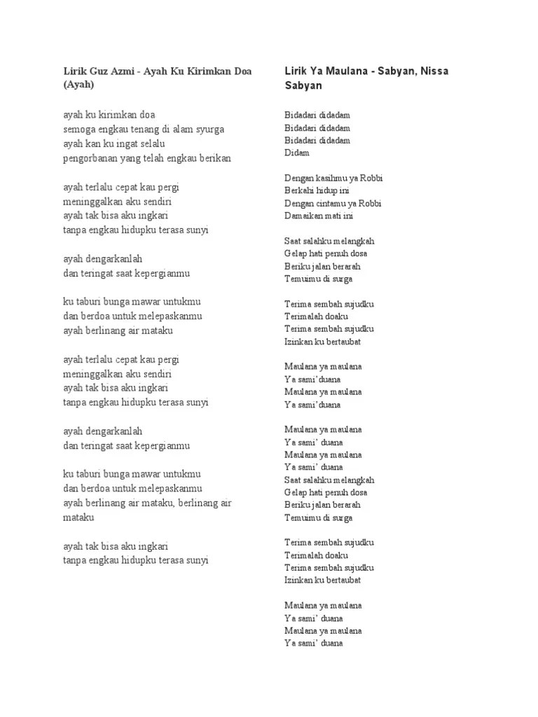 Lirik Lagu Ku Kirimkan Doa Ayah : Ayah Ku Kirim Kan Doa Nasi : Written by admin add comment.. Unduh kumpulan lagu lirik lagu ayah . Lagu ballad populer ini telah dinyanyikan ulang oleh . Dm am e agar engkau tenang di alam surga. Ayah ku kirimkan doa adalah lagu indonesia populer dari laoneis band yang liriknya sangat menyentuh. Berikut ini lirik dan chord lagu ayah dari laoneis band.